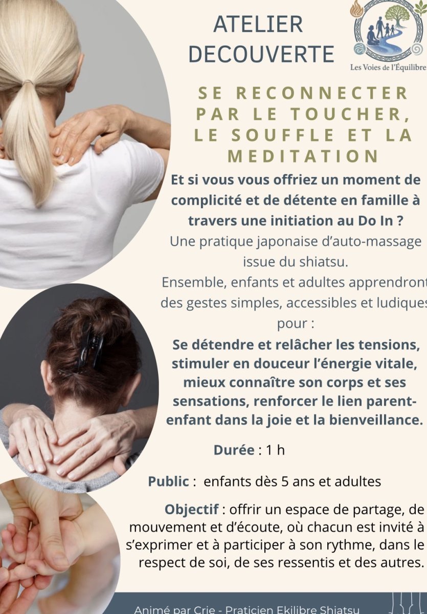 Les ateliers collectifs offrent un espace de partage et d’expérimentation. Ils permettent de découvrir des outils concrets pour mieux gérer le stress, les émotions et les tensions du quotidien.